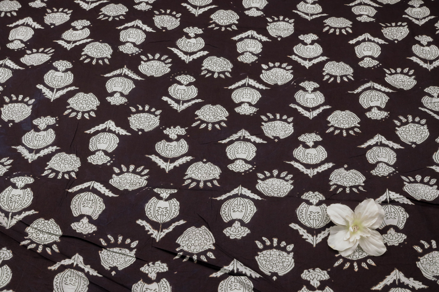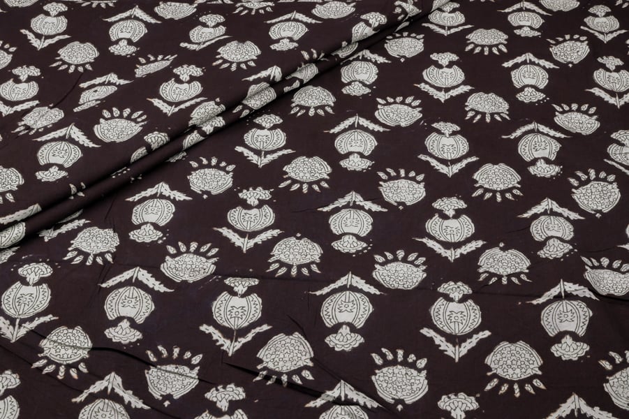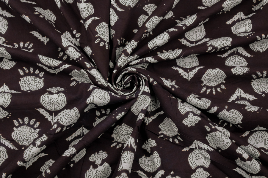 Rich Mahogany Brown Floral Handblock Printed 100% Pure Soft Cotton Fabric