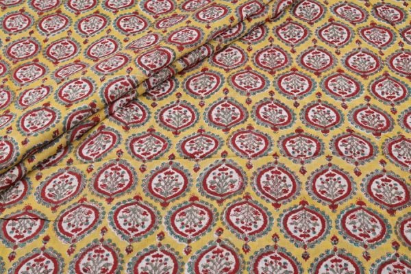 Pre-Cut 1m Royal Yellow MUL Floral Handblock Printed 100% Pure Soft Cotton Fabric