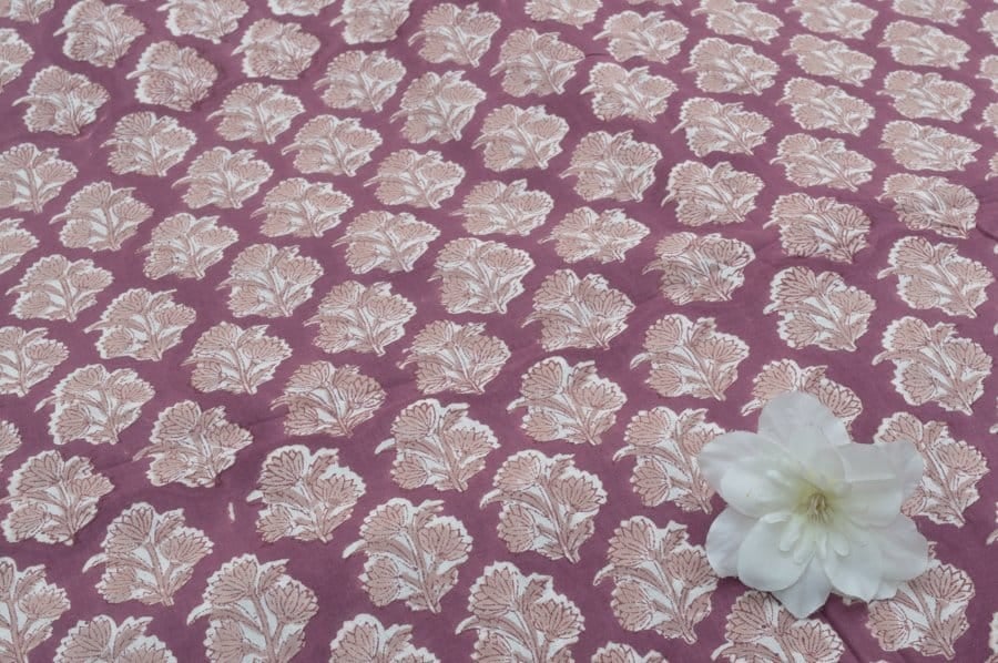 Mountbatten Pink Floral Handblock Printed 100% Pure Soft Cotton Fabric