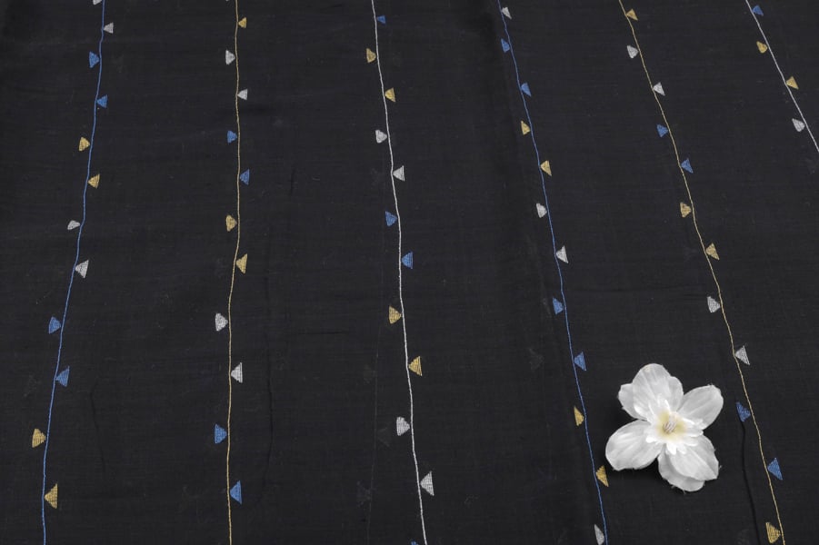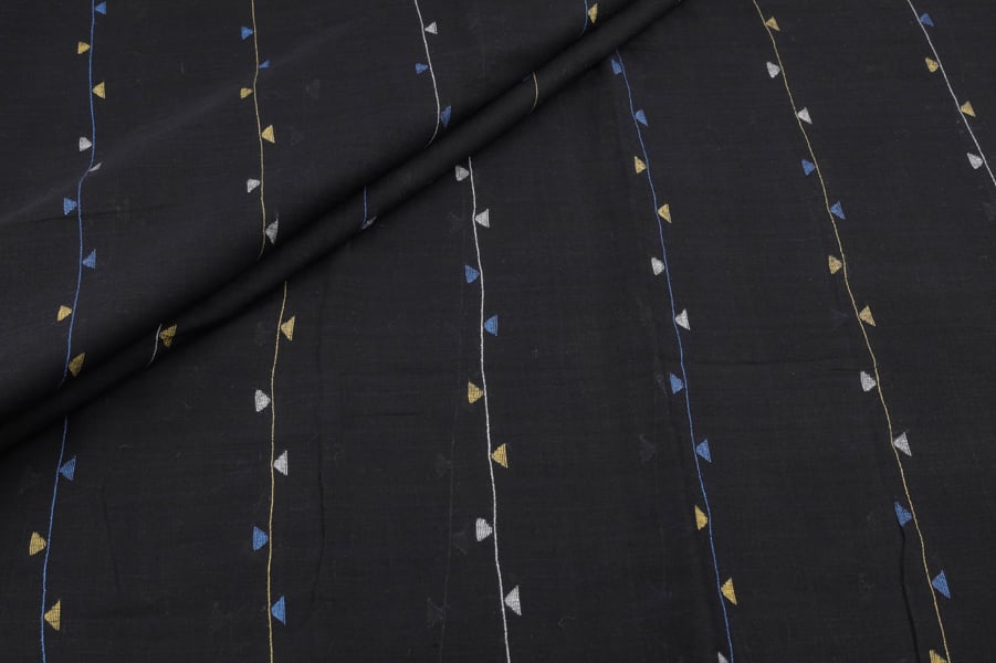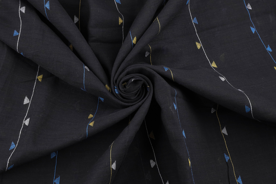 Pre-Cut 0.70m Black Woven Design Flowy HandLoom Pure Soft Cotton Fabric