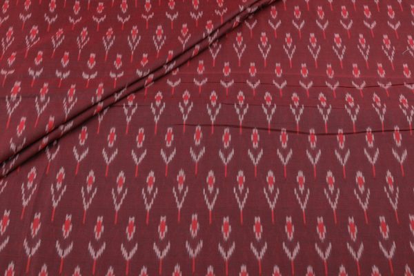 Pre-Cut 1m Burnt Rose Red Mercerised Fine Handloom Ikkat Tie-Dye Pure Soft Cotton Fabric