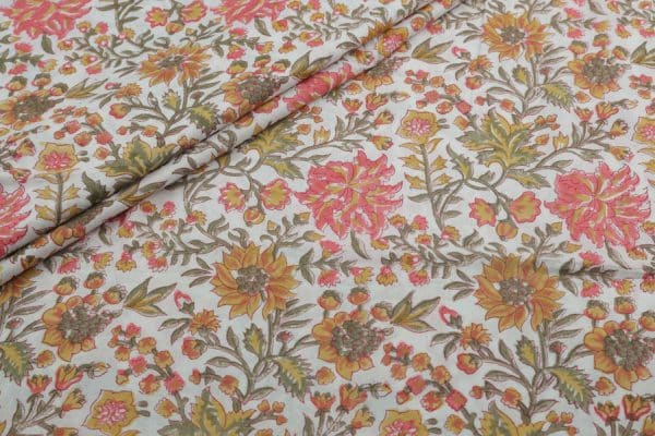 Pre-Cut 1.35m White Floral Handblock Printed 100% Pure Soft Cotton Fabric