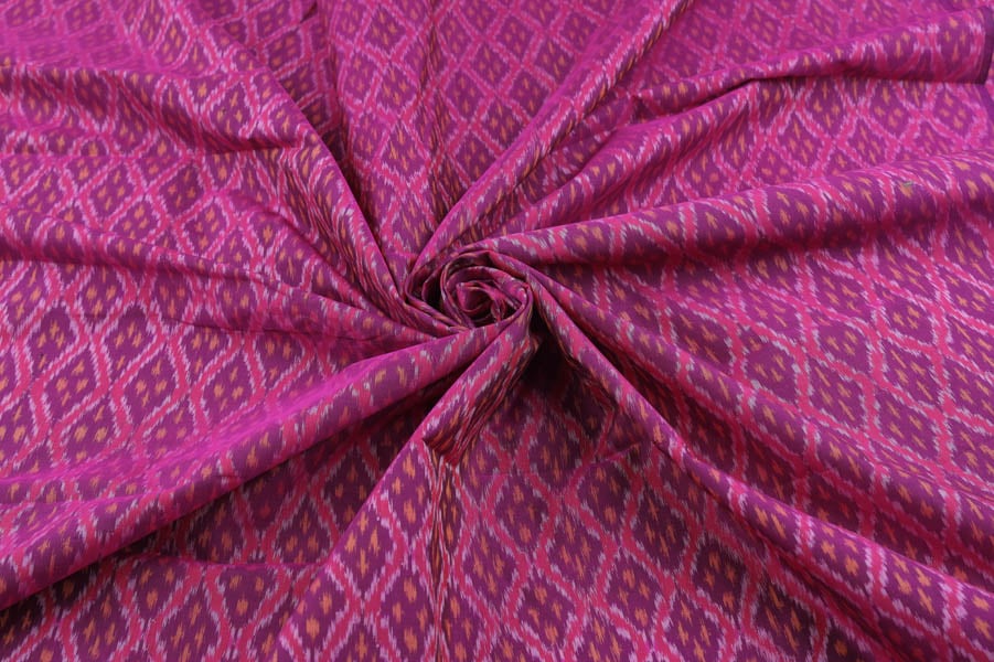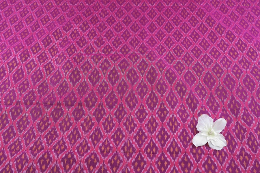 Pre-Cut 0.80m Pinkish Purple Authentic Handwoven Soft Silk-Cotton Ikkat Fabric