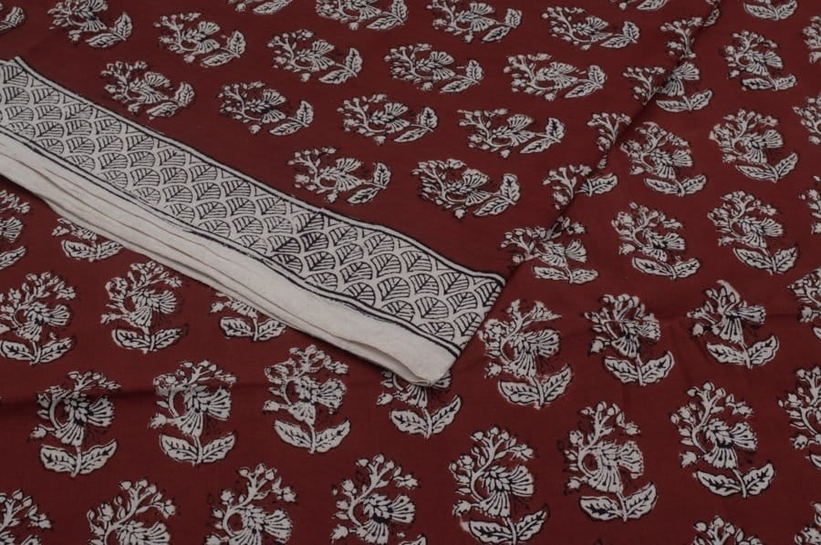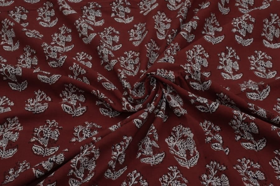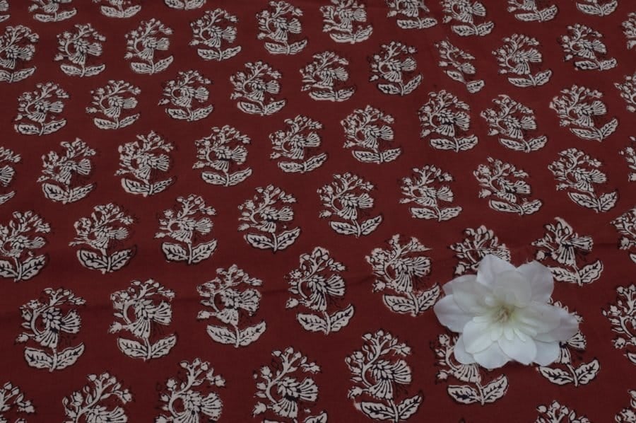 Auburn Red Handblock Bagh Printed Cotton Fabric