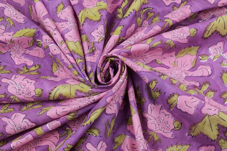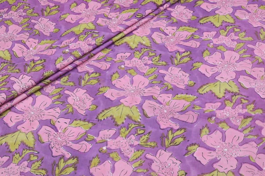 Pre-Cut 0.90m Fuchsia Purple Floral Handblock Printed 100% Pure Soft Cotton Fabric