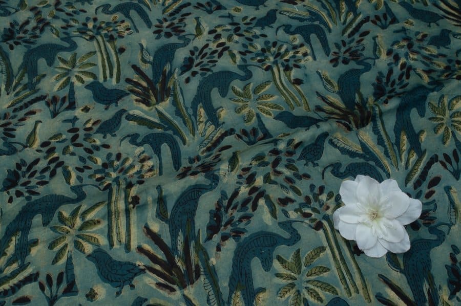 Blue Green Hand Blockprinted, Modal Soft Silk Fabric