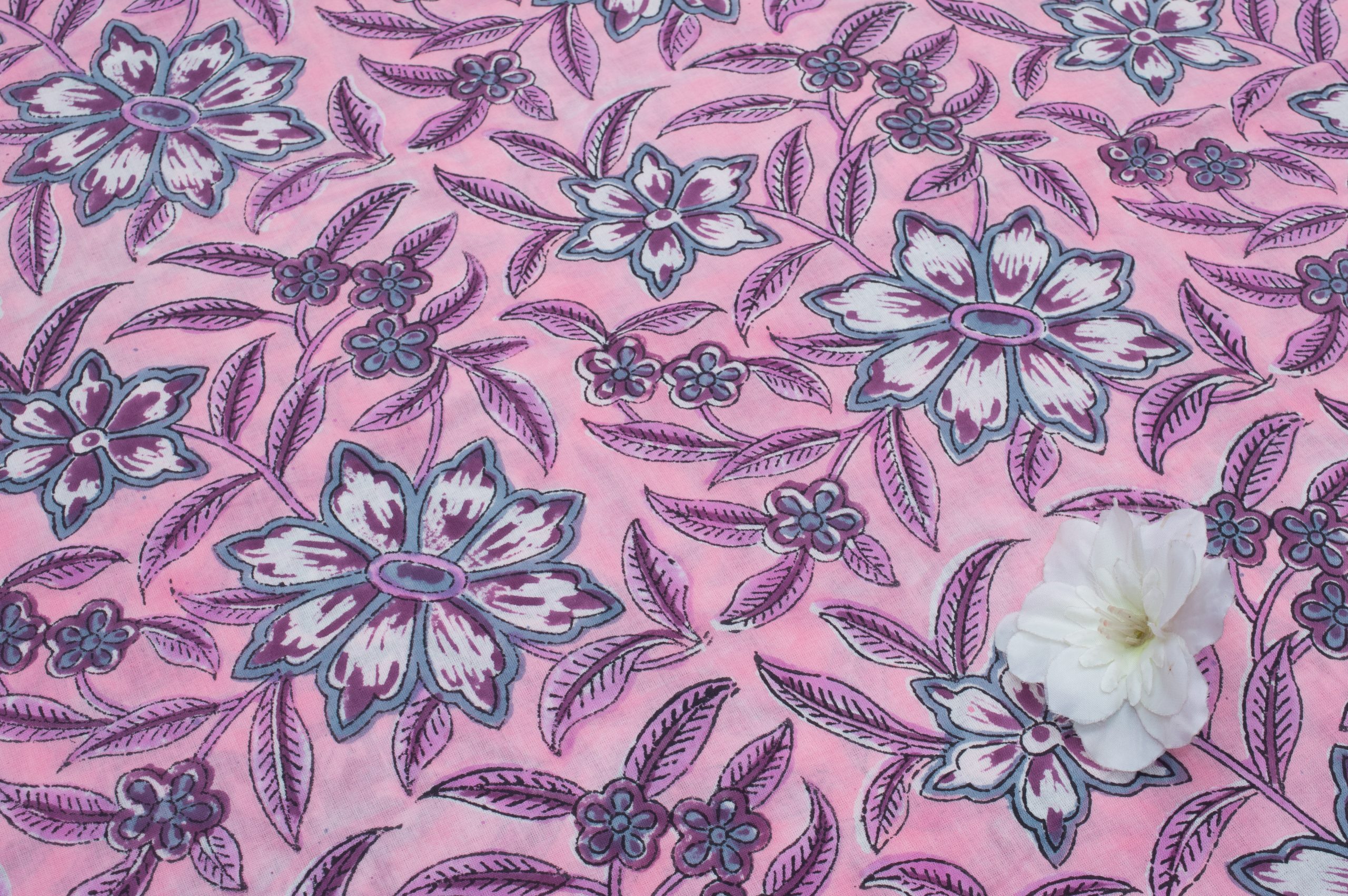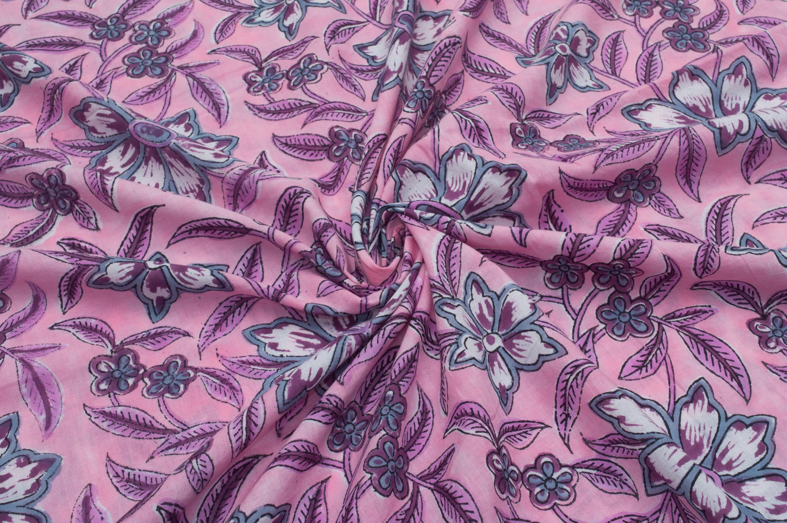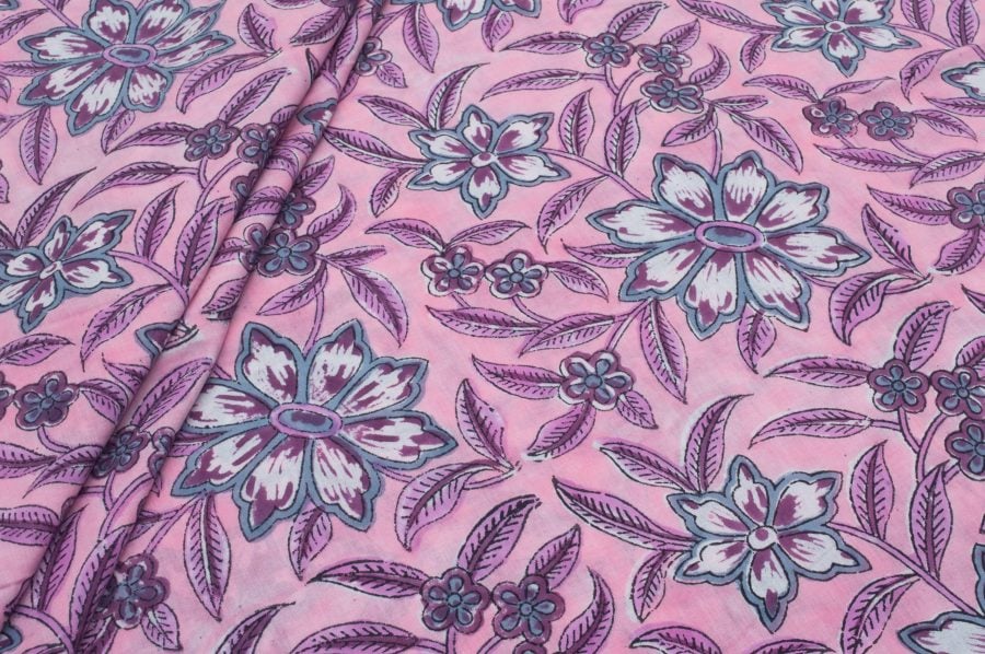 Pink Floral Handblock Printed 100% Pure Soft Cotton Fabric