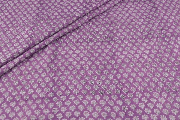 Pre-Cut 1.40m Violet Floral Handblock Printed 100% Pure Soft Cotton Fabric