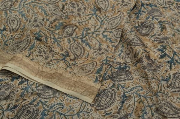 Pre-Cut 0.90m Kalamkaari Soft Maheshwari Silk Fabric With Border