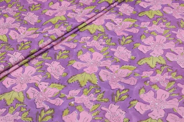 Pre-Cut 0.90m Fuchsia Purple Floral Handblock Printed 100% Pure Soft Cotton Fabric