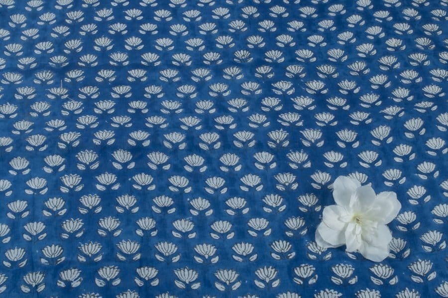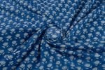 Sapphire Blue Floral Handblock Printed 100% Pure Soft Cotton Fabric