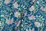 Capri Blue Floral Handblock Printed 100% Pure Soft Cotton Fabric