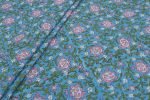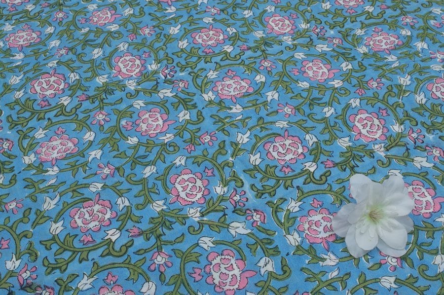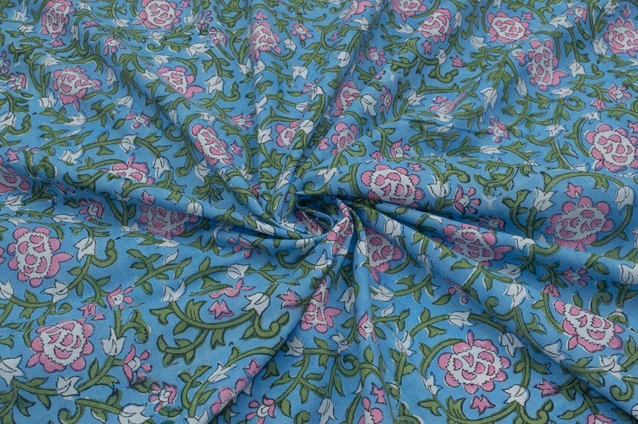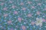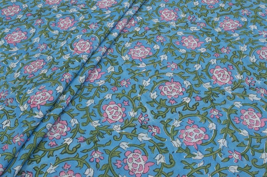 Sky Blue Floral Handblock Printed 100% Pure Soft Cotton Fabric