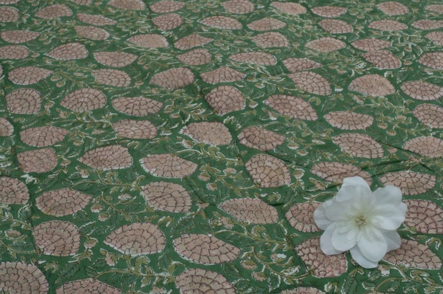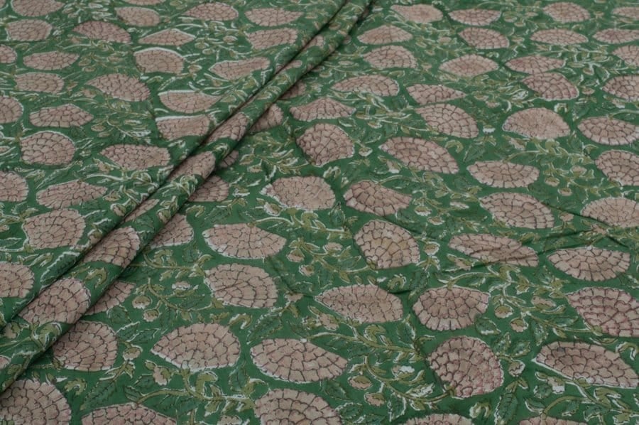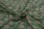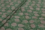 Vridian Green Floral Handblock Printed 100% Pure Soft Cotton Fabric