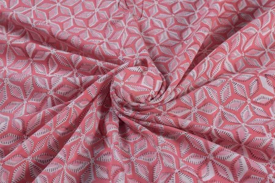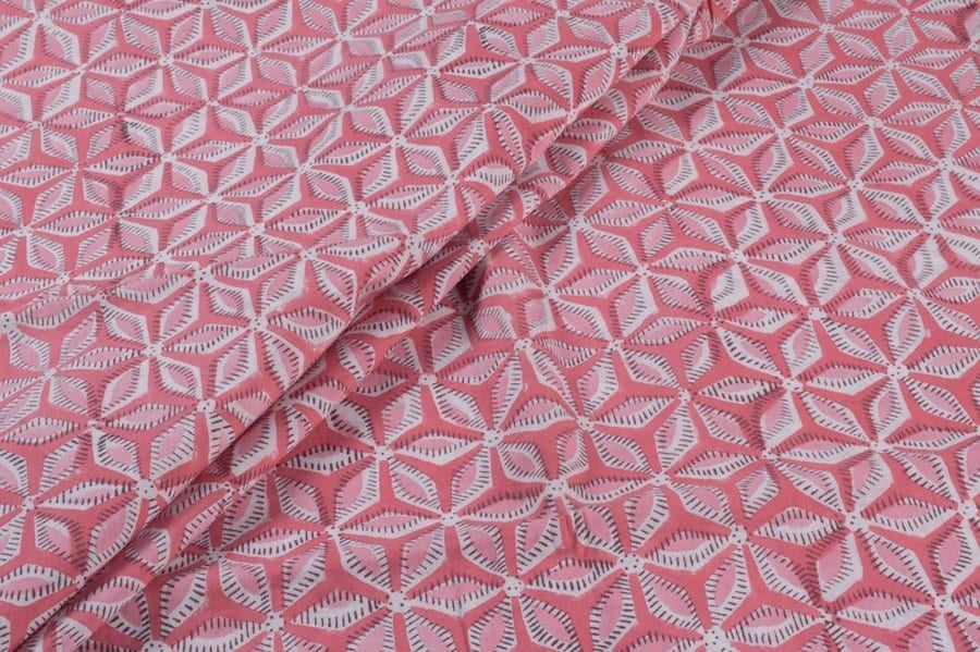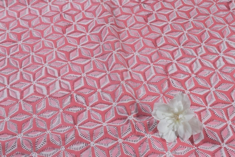 Watermelon Pink Floral Handblock Printed 100% Pure Soft Cotton Fabric