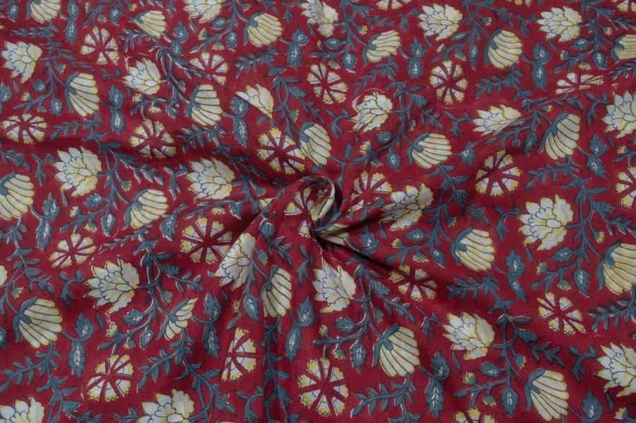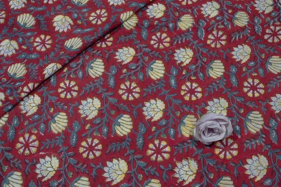 Neon Red Floral Handblock Printed 100% Pure Soft Cotton Fabric