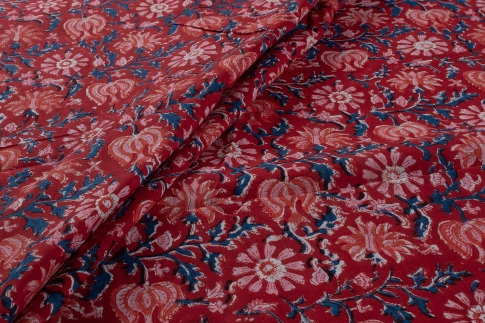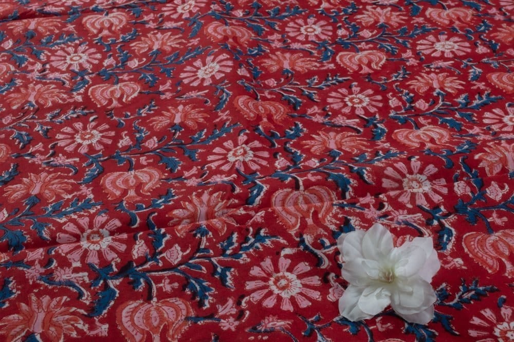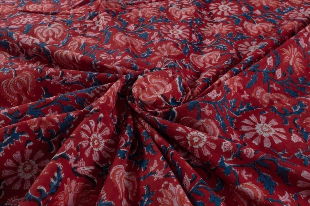 Blood Red Floral Handblock Printed 100% Pure Soft Cotton Fabric