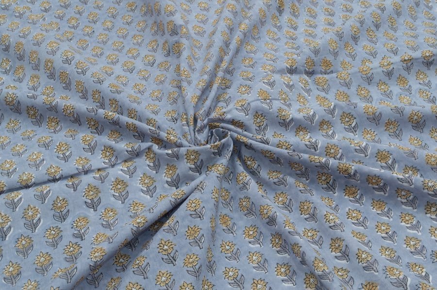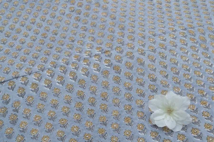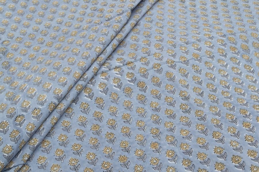Slate gray Floral Handblock Printed 100% Pure Soft Cotton Fabric