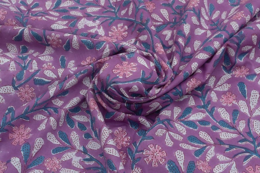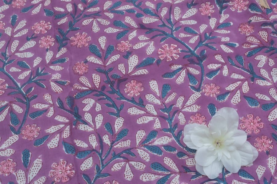 Lilac Purple Floral Handblock Printed 100% Pure Soft Cotton Fabric