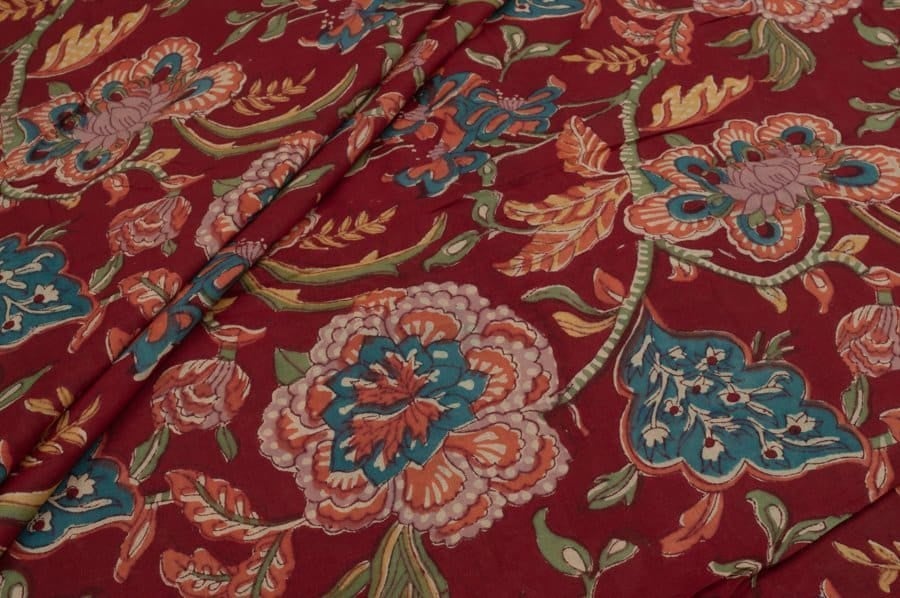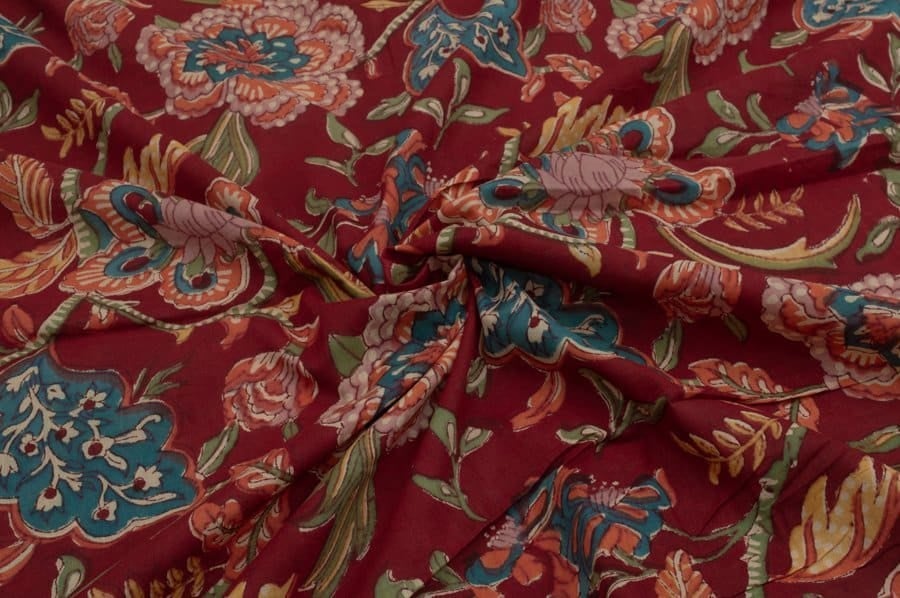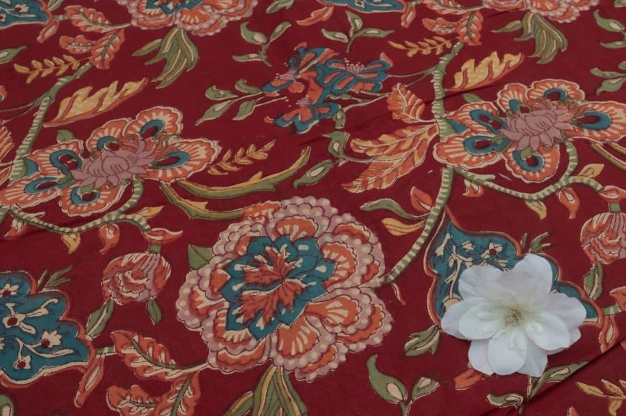 Auburn Red Floral Handblock Printed 100% Pure Soft Cotton Fabric