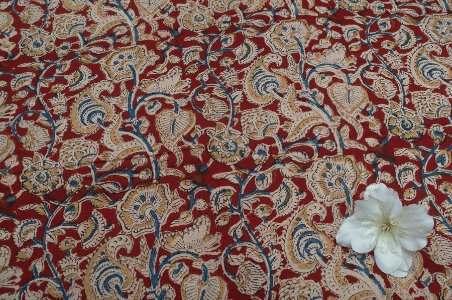 Natural Red Handblock Kalamkaari Printed Cotton Fabric