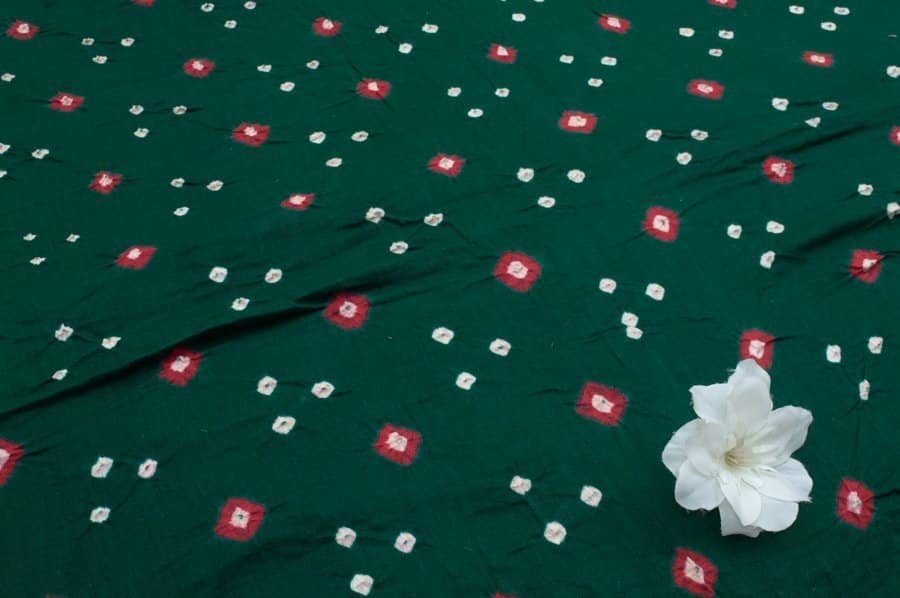 Dark Green Bandhani Tie Dye 100% Pure Soft Cotton Satin Finish Fabric