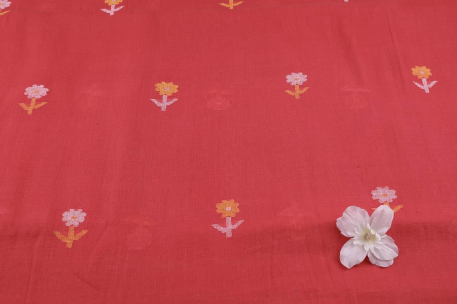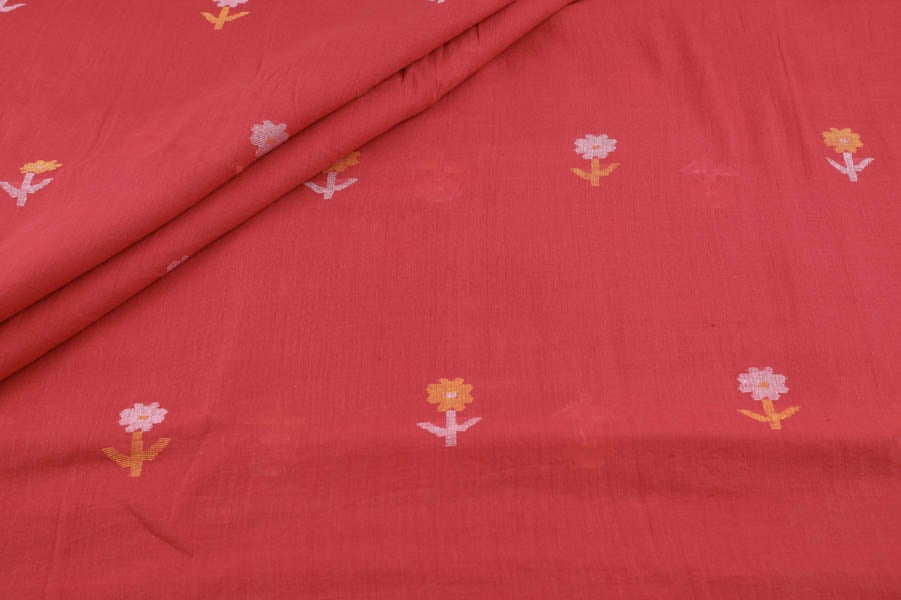 Pre-Cut 1.40m Red Woven Design Flowy HandLoom Pure Soft Cotton Fabric