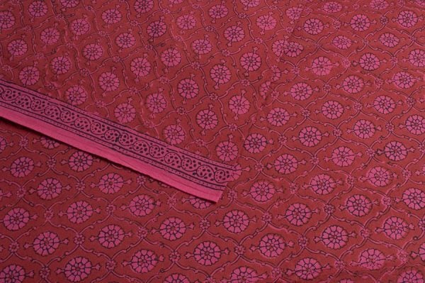 This Fabric is handloom woven and / or hand printed using vegetable dyes. There might be slight irregularities in the motif & colour shade which is a result of human involvement & is a hallmark of fabrics made by hand. Since the fabric is dyed using natural, vegetable dyes, it may rub dry or bleed colour on coming in contact with water for the first time.