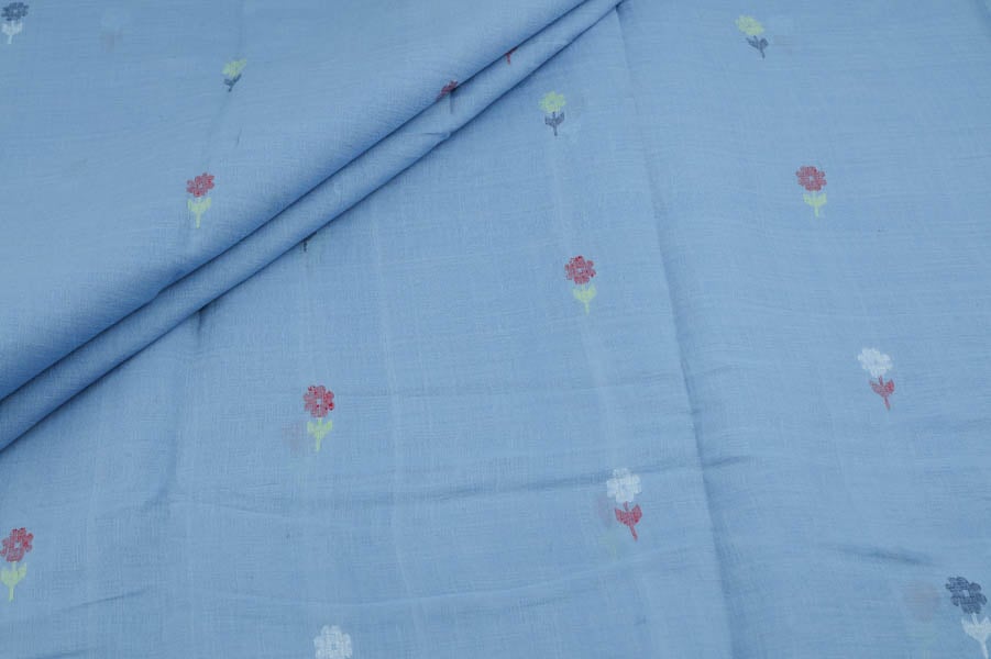 Pre-Cut 1m Ice Blue Woven Design Flowy HandLoom Pure Soft Cotton Fabric