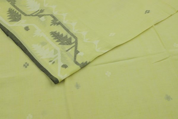 Pre-Cut 0.60m Bamboo Green Handloom Jamdani Intricate Border Flowy HandLoom Pure Soft Cotton Fabric