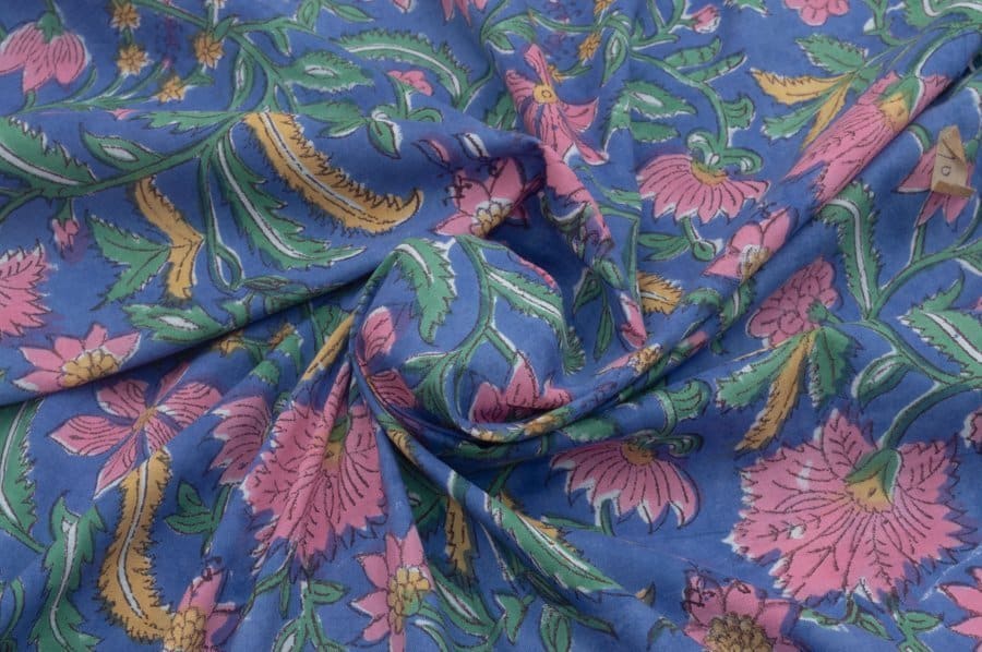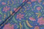 Purplish Blue Floral Handblock Printed 100% Pure Soft Cotton Fabric