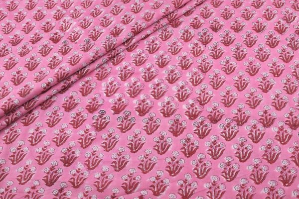 Rose Orchid Floral Handblock Printed 100% Pure Soft Cotton Fabric