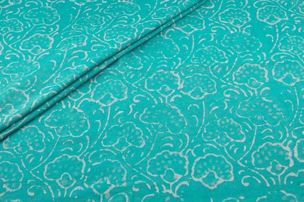 Pre-Cut 2.15m Turquoise Blue Bagru Handblock Printed Cotton Fabric