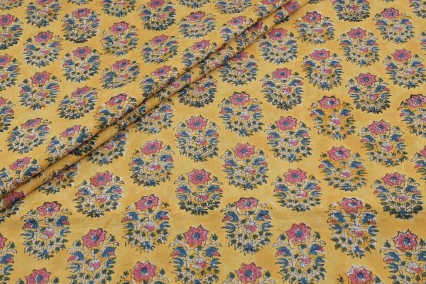 Pre-Cut 1.15m Bright Yellow Floral Handblock Printed 100% Pure Soft Cotton Fabric