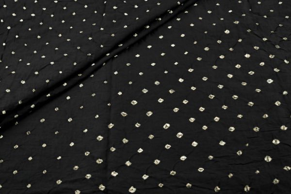 Deep Charcoal Black Bandhani Tie Dye 100% Pure Soft Cotton Satin Finish Fabric