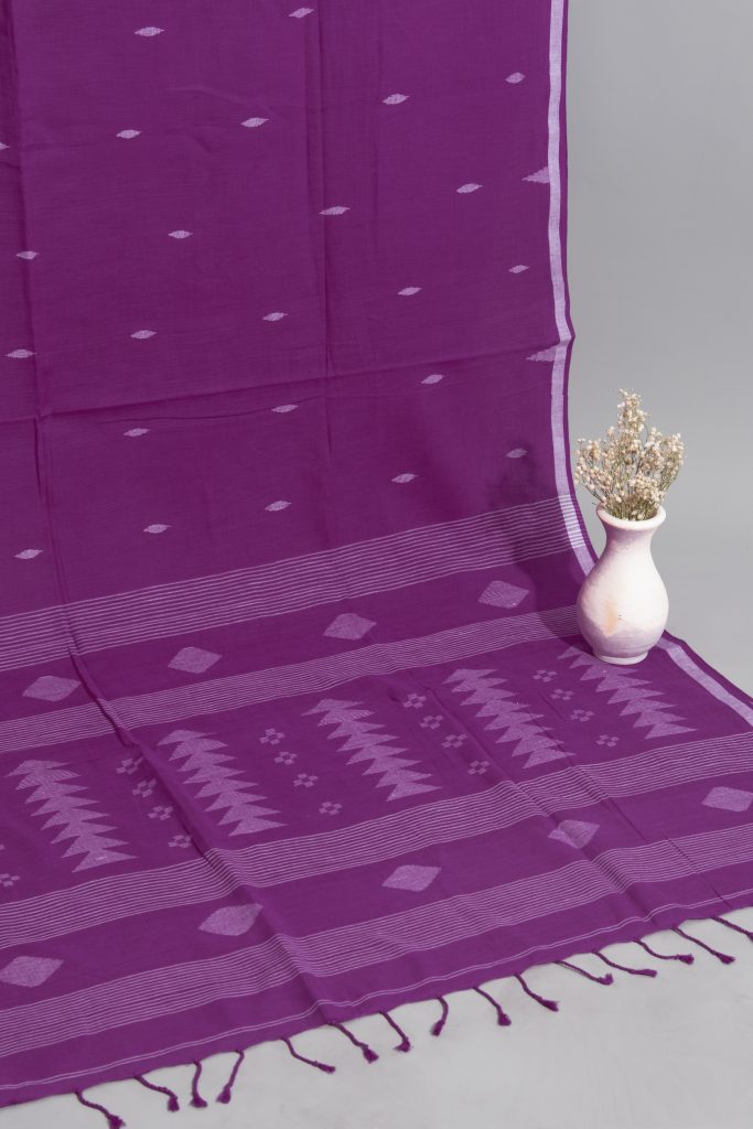 Mardi Gras Purple Jamdani Lightweight Handspun HandLoom Soft Cotton Saree