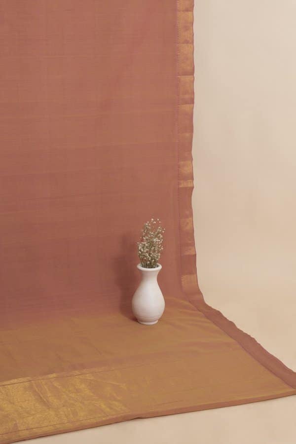 Two Tone Lion Brown Mangalgiri Zari Border Lightweight HandLoom Woven Soft Cotton Saree