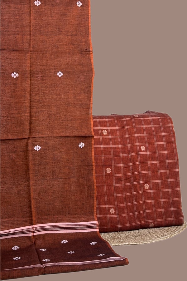 Brown – 2pc Handloom Cotton Dupatta and Handloom Woven Design Top Fabric Set