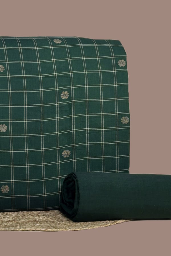 Green – 2pc Handloom Woven Design Cotton Top and Handloom Soft Cotton Bottom Fabric Set