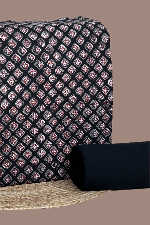 2pc Bagru HandCrafted Top and Plain Dyed Cotton Bottom Fabric Set