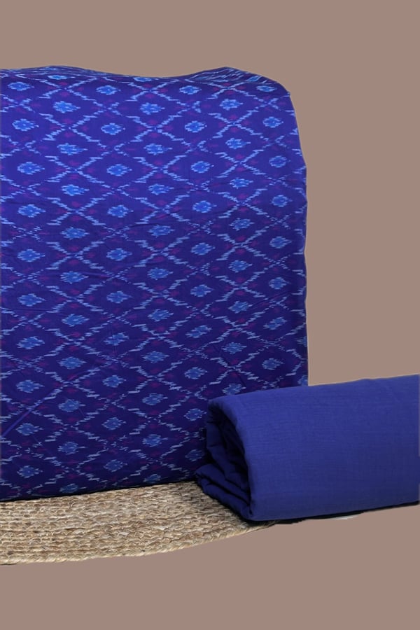 2.5mtr Each – Hand Tie–Dye CotonSilk Soft Ikkat Top with Handloom Bottom Pure Cotton Fabric Set