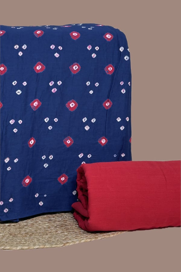 2pc Gajji Silk Bandhani Dupatta with Cotton Bandhani Top Fabric Set