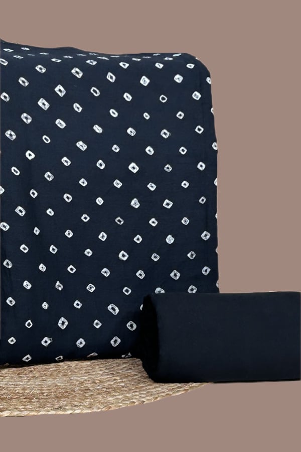 2pc Hand Tie-Dye Bandhani Pure Cotton Top With Plain Dyed Cotton Bottom Fabric Set