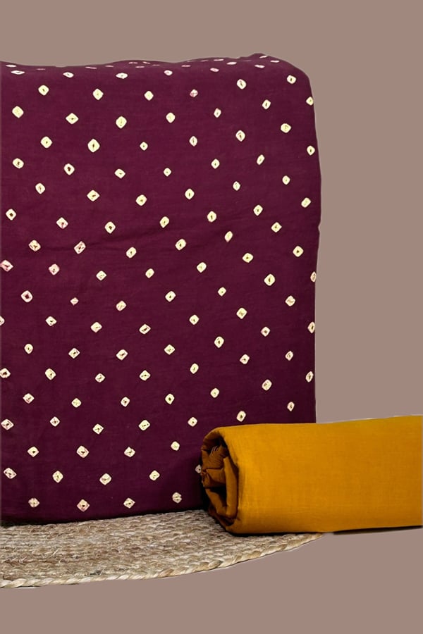 2.5mtr Each – Bandhani Pure Cotton Fabric Top with Plain Dyed Cotton Bottom Fabric Set