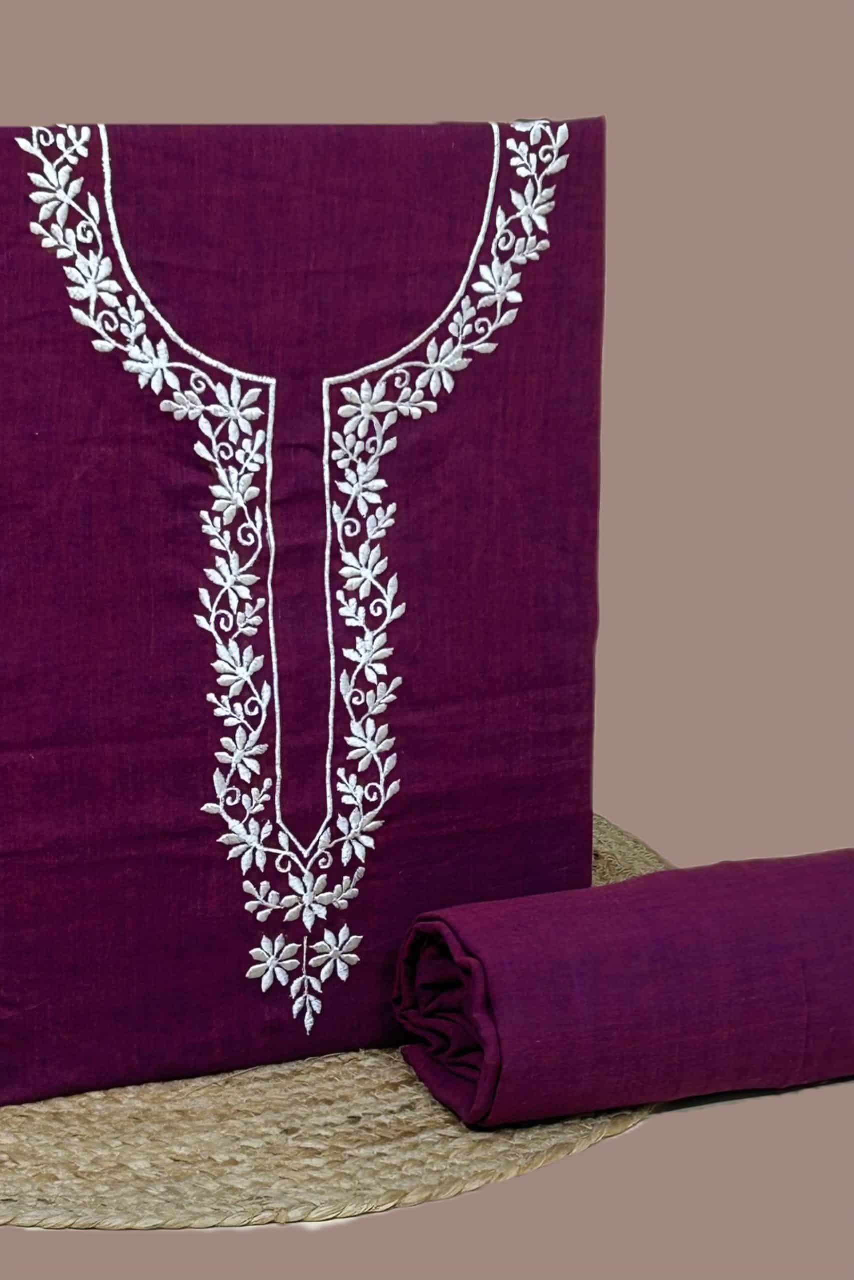 2Pc Handloom Embroidered Neck Design Soft Cotton Top(3m) Bottom(2.5m) Fabric Set