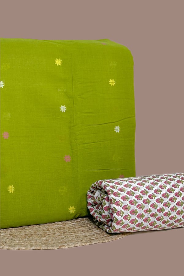 2pc Handloom Woven Design Cotton Top and Blockprint Cotton Bottom Fabric Set