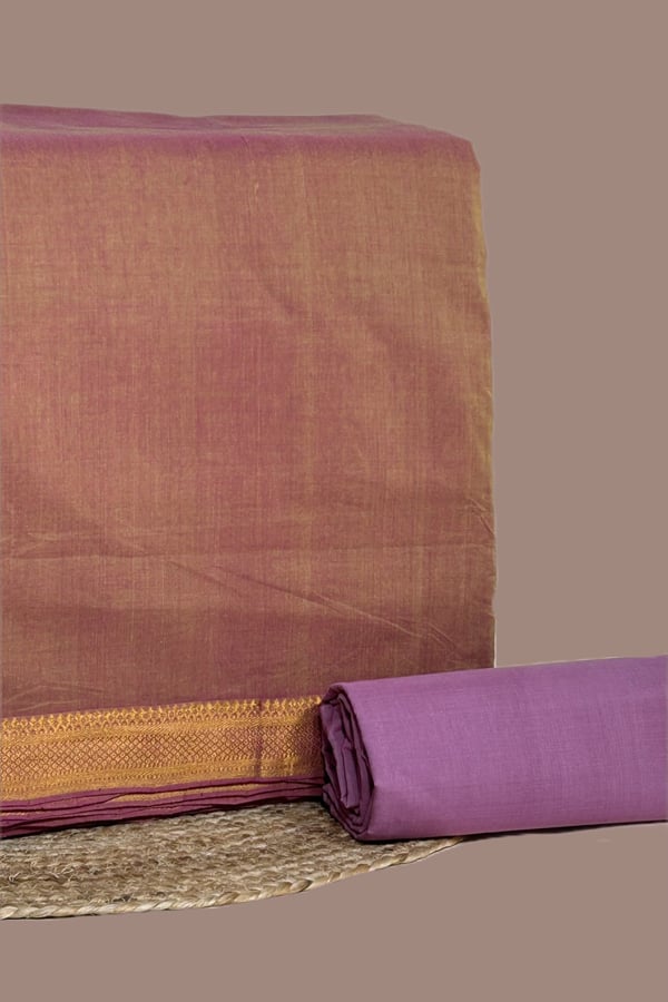 2pc Mangalgiri Zari Border Top and Mangalgiri Cotton Bottom Fabric Set