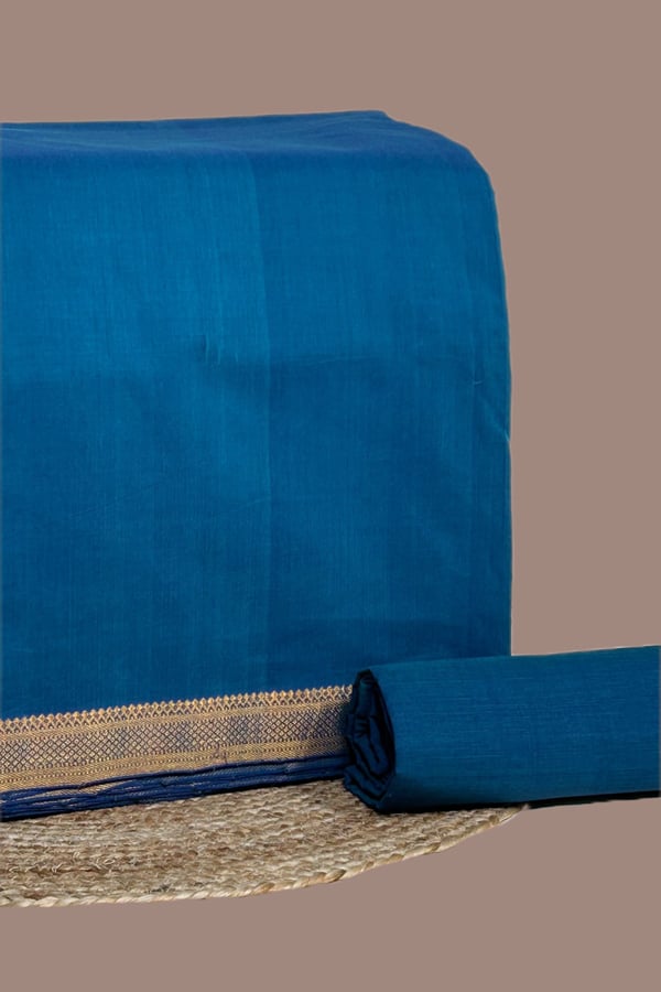 2.5mtr Each – Mangalgiri Pure Cotton Zari Border Top With Plain Bottom Fabric Set
