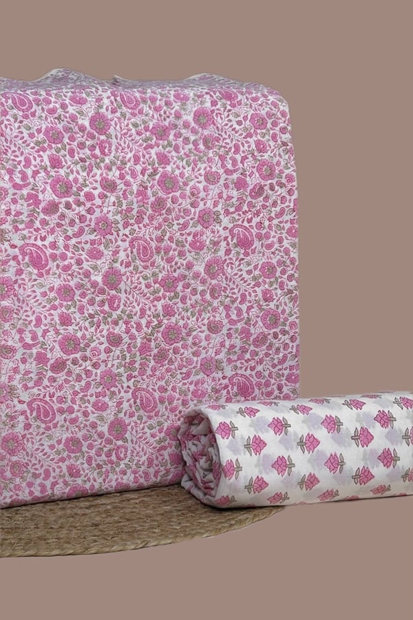 2.5mtr Each – HandBlock Printed Pure Soft Cotton Top Bottom Fabric Set