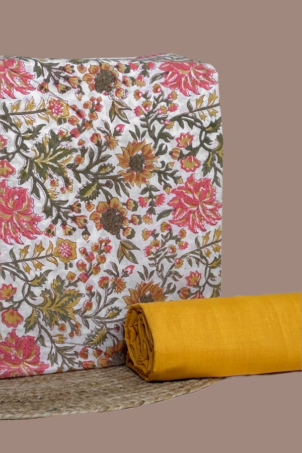 2pc Pure Soft Cotton Blockprinted Top and Bottom Fabric Set